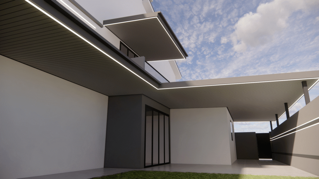 Premium build, custom colours, hidden gutter, UV protection, and 3D preview. Quality trusted by higher-end homes.